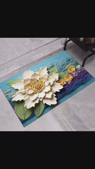 5D Square Floral Printed Anti-Slip Floor Mat – Soft & Durable Decorative Carpet (Multicolor)
